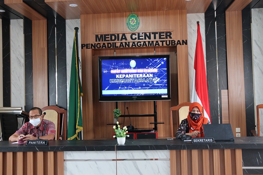Jum’at, 7 Mei 2021 bertempat diruang Media Center Pengadilan Agama Tuban dilaksanakan Rapat Monitoring dan Evaluasi untuk Bidang Kepaniteraan dan Kesekretariatan. Rapat dimulai pada pukul 13.30 s.d 15.00 dan dihadiri oleh seluruh karyawan PA Tuban yang berada di bawah bidang Kepaniteraan dan Kesekretariatan.